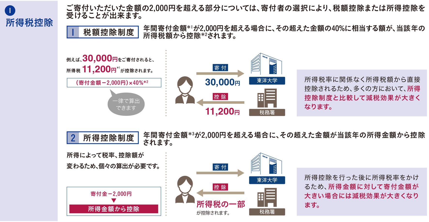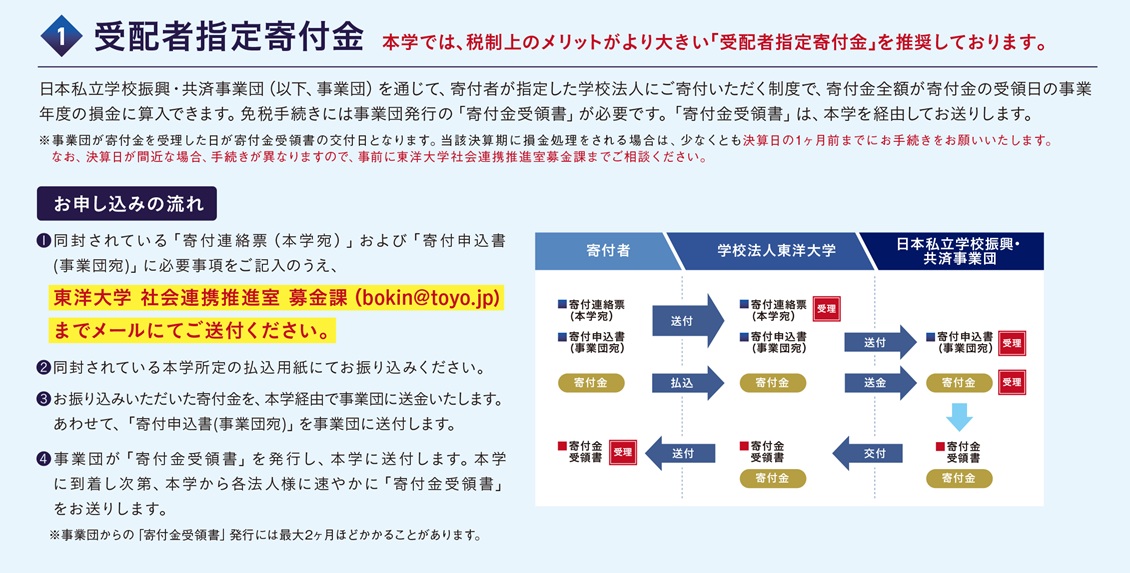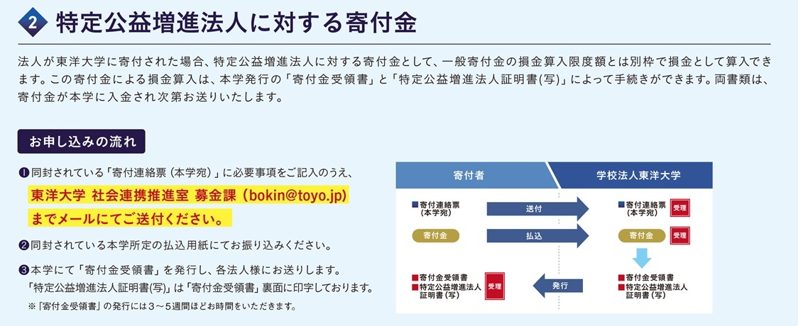 東洋大学へのご寄付は税制上の優遇措置を受けることができます。